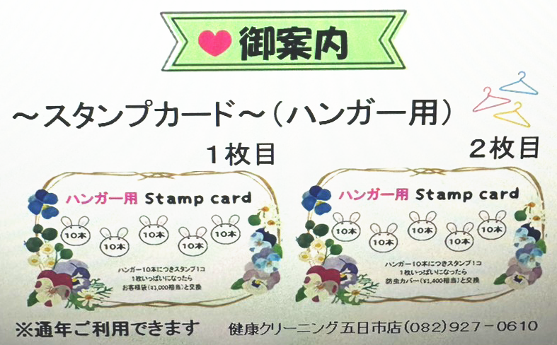 ●五日市店では、ハンガー回収によるお得なスタンプカードを発行します。